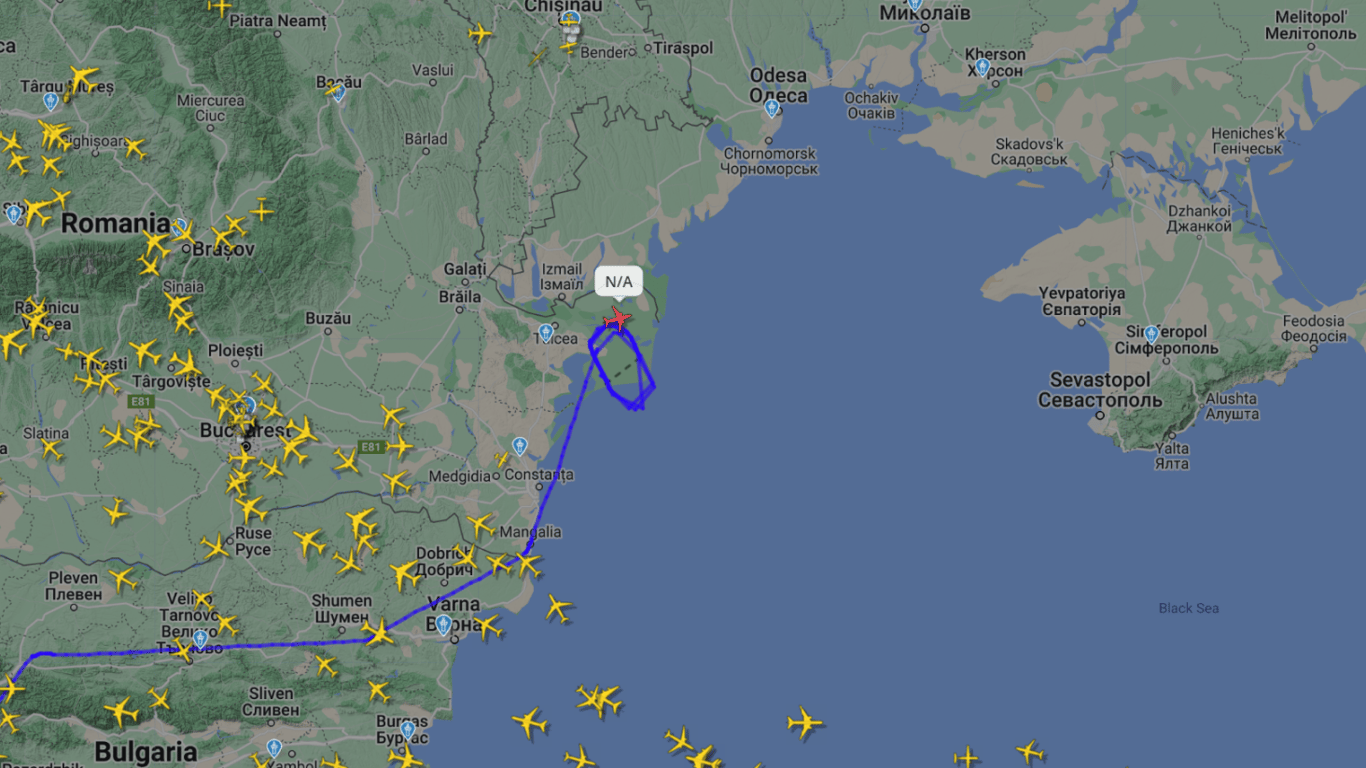 Над Чорним морем зафіксовано літак США, зазначений як американський розвідувальник Boeing P-8A Poseidon. Сьогодні, 31 березня, він патрулює повітряний простір Румунії та моніторить ситуацію біля південних берегів Одещини.