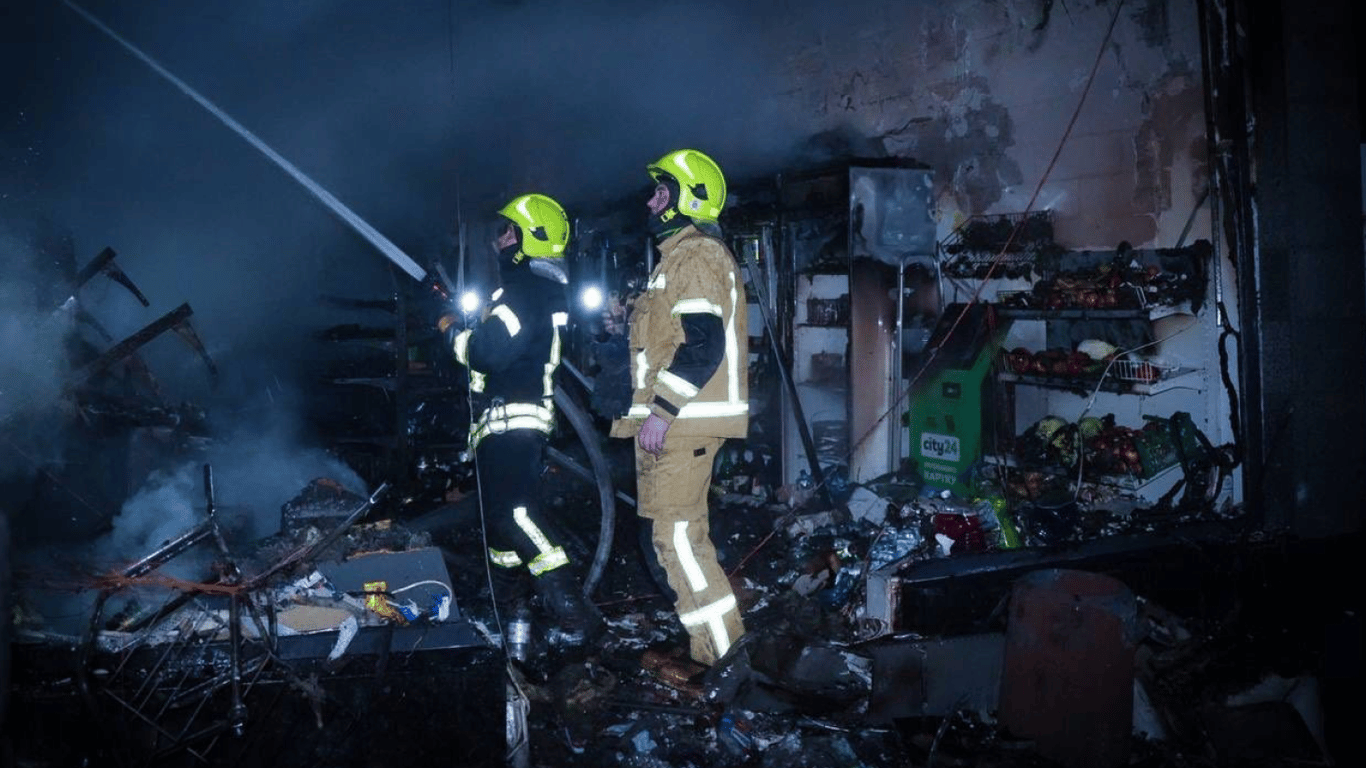 Також через атаку горіли і об’єкти бізнесу. Вогонь охопив будівлю СТО та склад автомобільних шин. Пожежу ліквідували на площі 300 м. кв, полум’я знищило два автомобілі. Також зайнялися два продовольчі магазини. Рятувальники загасили загоряння та не допустили поширення вогню.