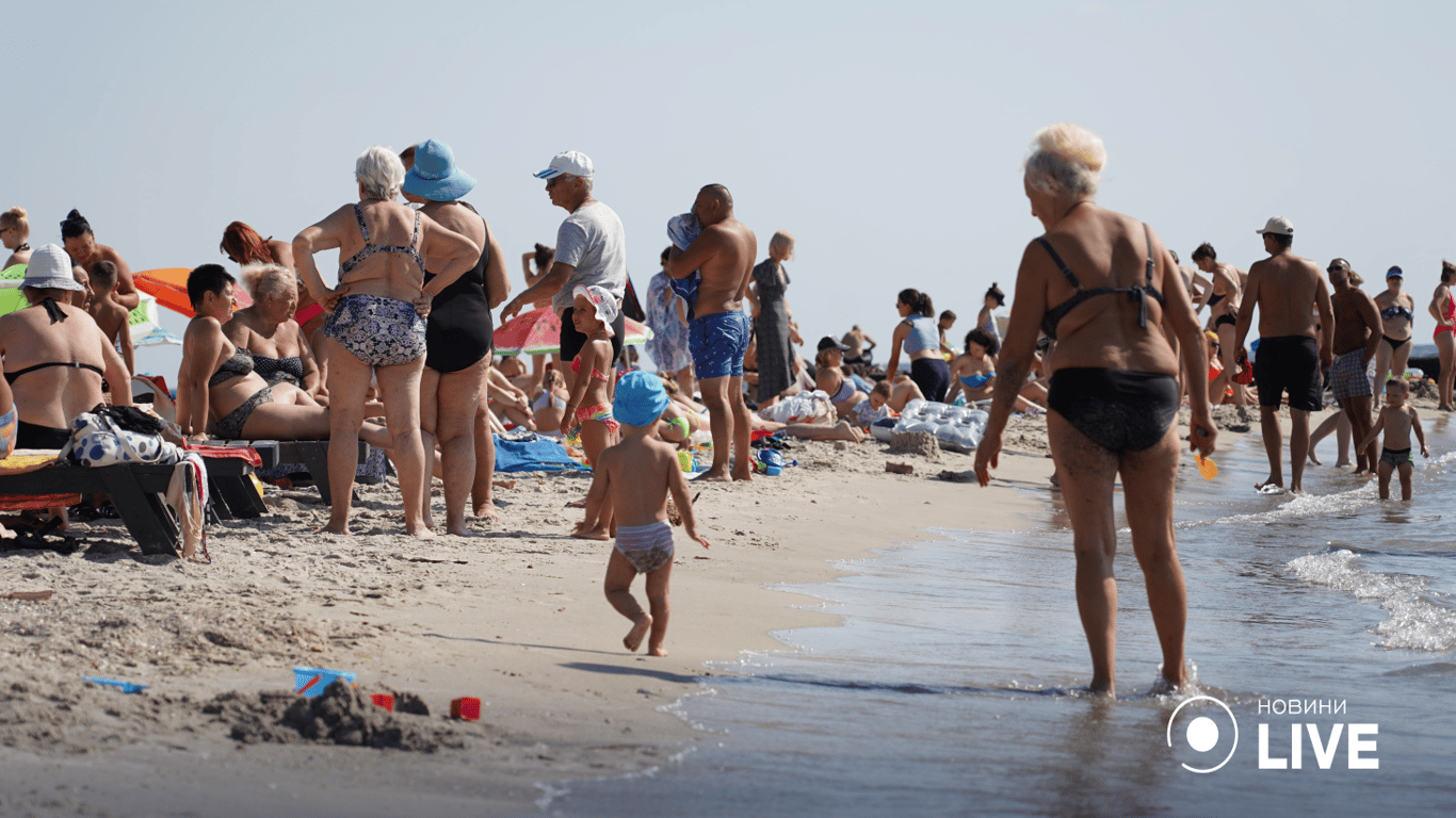 Поки стовпчики термометра місцями показують до +45 градусів, одесити від спеки рятуються на морі. Температура водойми сьогодні б'є всі рекорди.