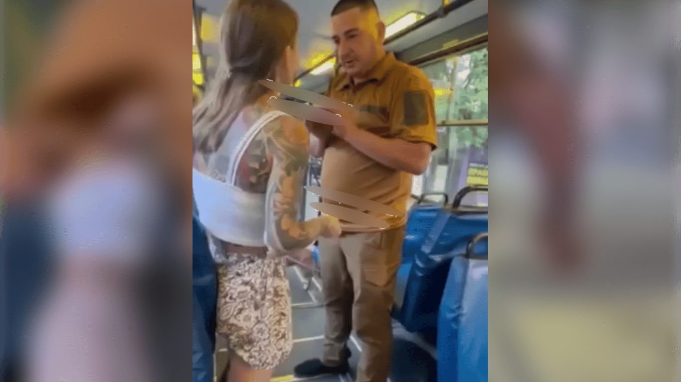 На вул. Успенській у Приморському районі Одеси а одному з тролейбусів чоловік у військовій формі почав агресивно себе поводити відносно кондукторки. На відео чути, як він голосно кричить на працівницю