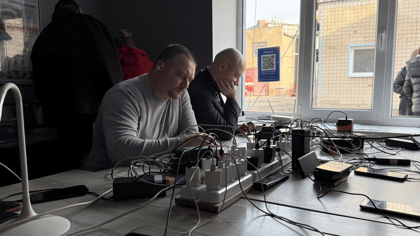 Пункт незламності для неї став місцем щоденної рутини. Світлана приходить сюди насамперед, щоб зарядити телефон — єдиний засіб зв’язку з рідними та джерело новин. Каже, іноді доводиться приходити дуже рано, щоб зайняти місце біля розетки.