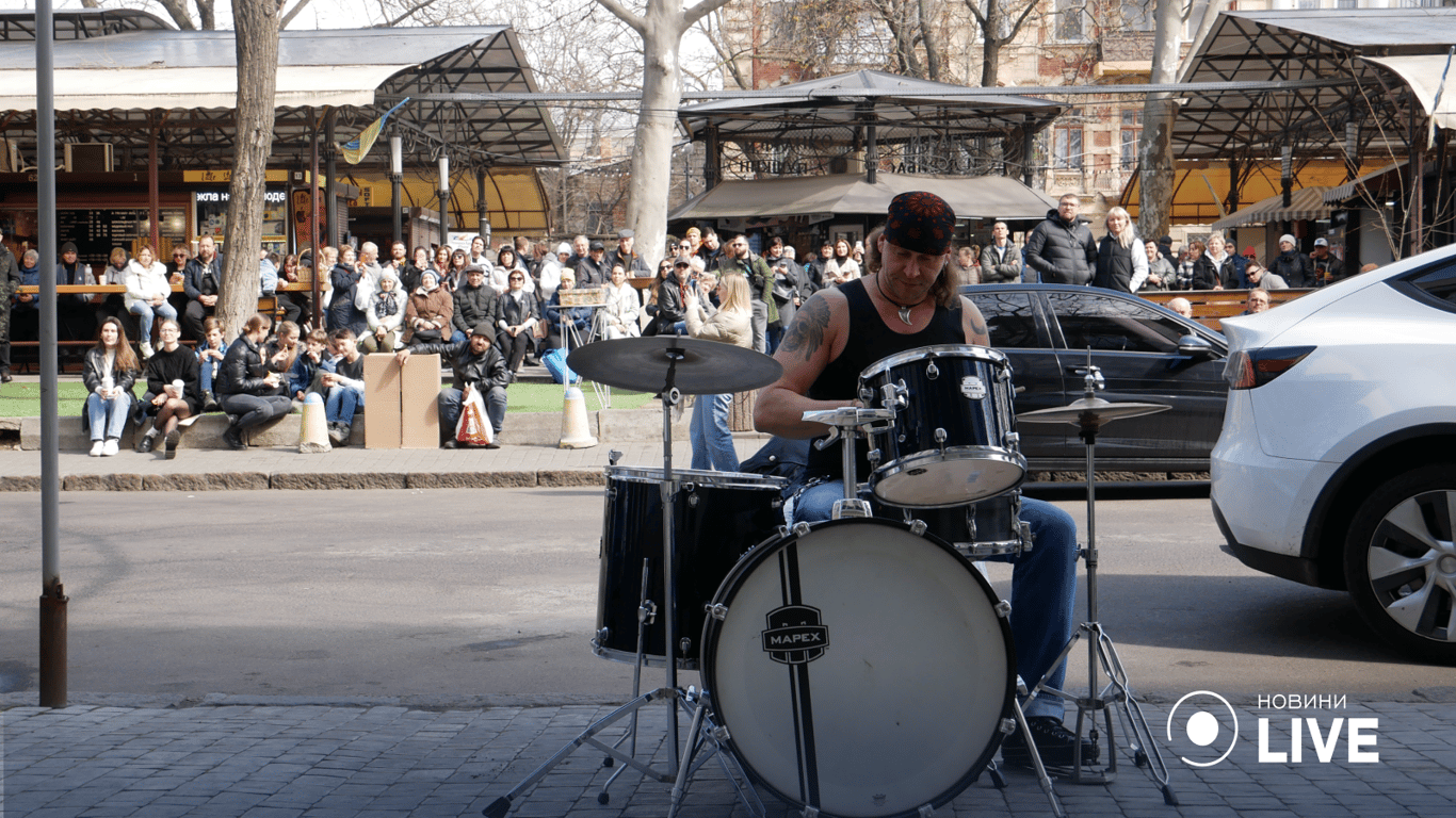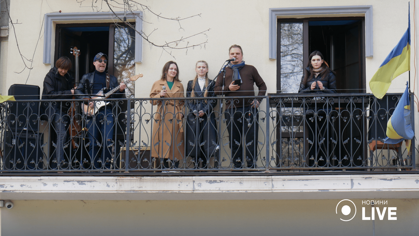 На Олександрівському проспекті в центрі Одеси пройшов концерт на балконі. Музиканти потішили одеситів україномовними піснями у стилі блюз.