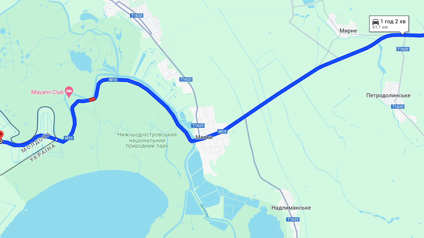 Наразі у бік пункту пропуску "Паланка — Маяки — Удобне" є затор у районі КПП. Ця ділянка на картах позначена червоним кольором. Подорож до Паланки триватиме сьогодні понад годину. На самому автомобільному пункті пропуску черг також не спостерігається.