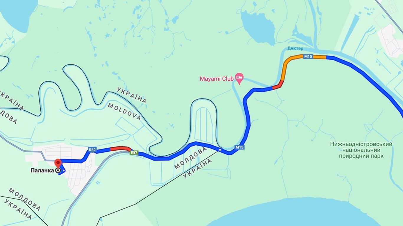 Наразі у бік пункту пропуску "Паланка — Маяки — Удобне" є незначне скупчення автівок у природному парку, крім того, рух ускладнено біля молдавського КПП, ця ділянка на картах позначена червоним кольором. Подорож до Паланки триватиме сьогодні 1 годину 10 хвилин.