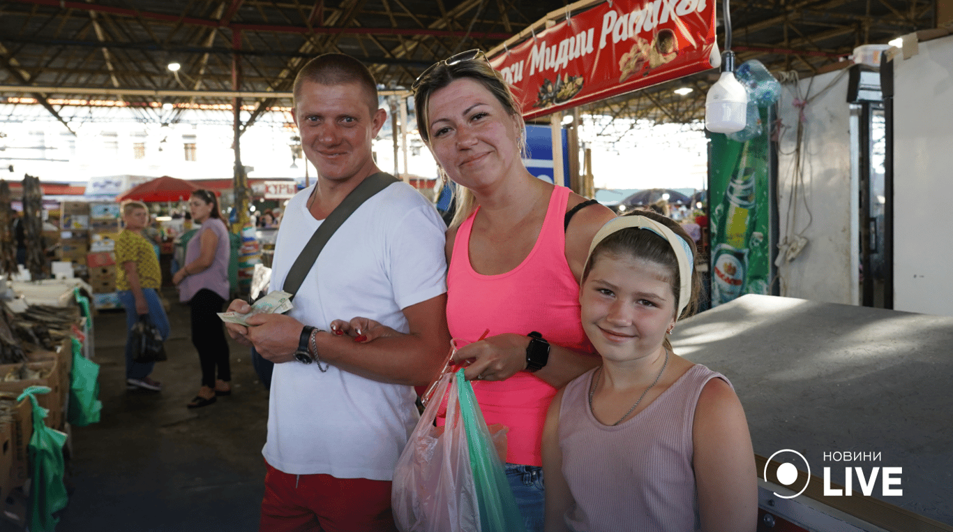 Нині на ринку "Привоз" можна зустріти чимало туристів, які приїхали до Одеси з різних міст України. Біля рибного відділу ми познайомилися із подружжям дніпрян Юлією та Леонідом. Напередодні Дня народження жінки вони вирішили влаштувати невеличкий родинний відпочинок.