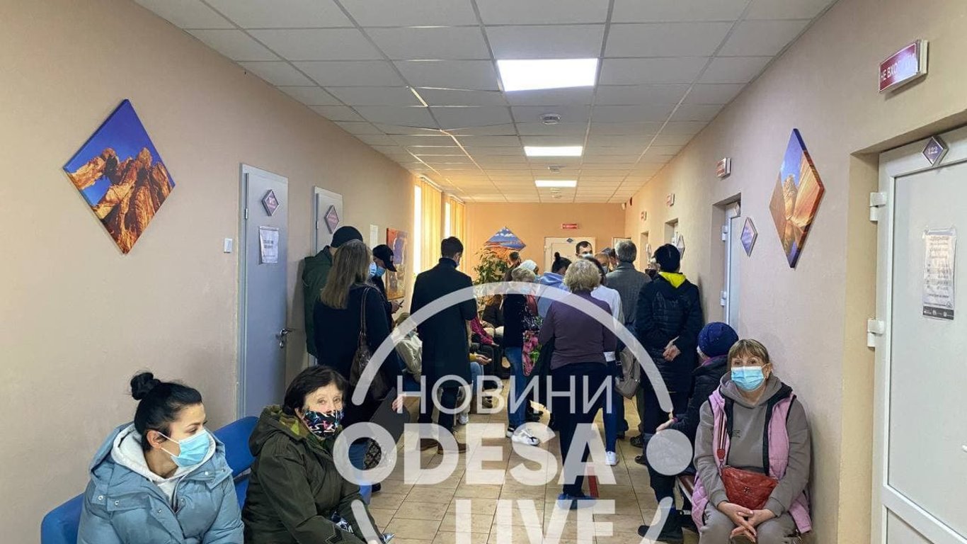 Довжелезні черги: в одеській поліклініці хворі чекають лікарів поряд зі здоровими. Фото