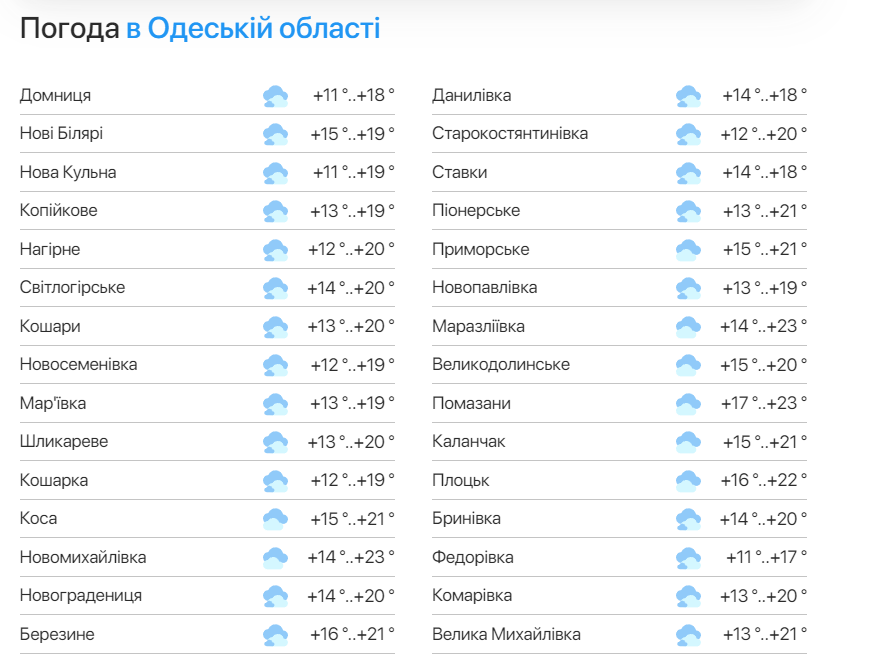 - Вітер північно-східний, 9-14 м/с. Температура вночі 12-17°С, вдень 21-26°С.
