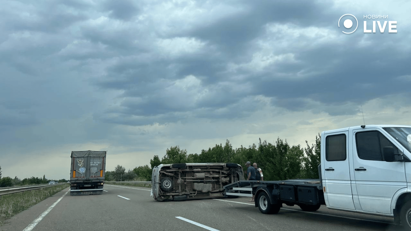 За 105 км від Одеси на трасі М05 мікроавтобус Hundai перекинувся та загородив рух іншим транспортним засобам. На місце був викликаний евакуатор, аби прибрати бус з проїжджої частини. Що саме стало причиною аварії — наразі невідомо.