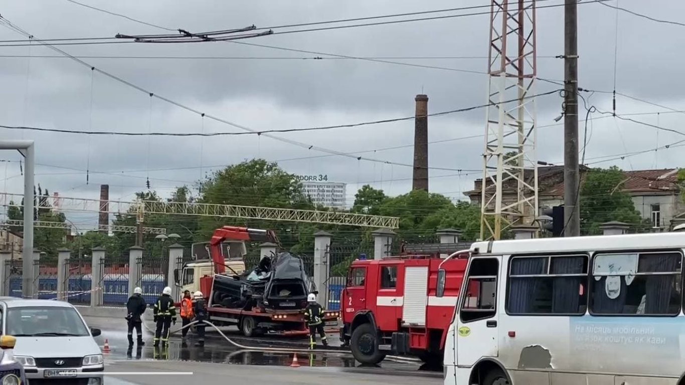 ДТП біля залізничного вокзалу в Одесі: з дороги забирають понівечену автівку, а вулицю скували затори