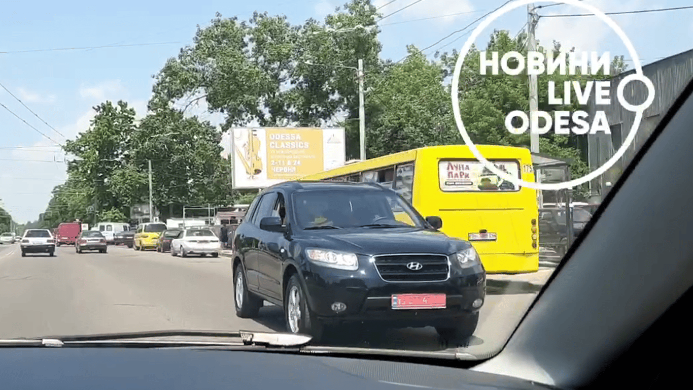 Кореспондент Новини.LIVE Odesa зняв дивні маневри автомобіля Hyundai. Джип на транзитних номерах пересувався заднім ходом на жвавій дорозі.