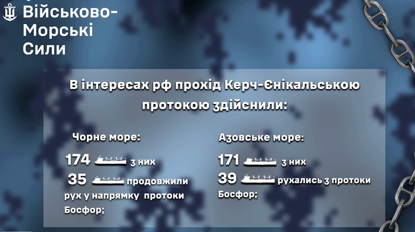 - до Азовського моря — 171 судно, з них 39 суден рухались з протоки Босфор;