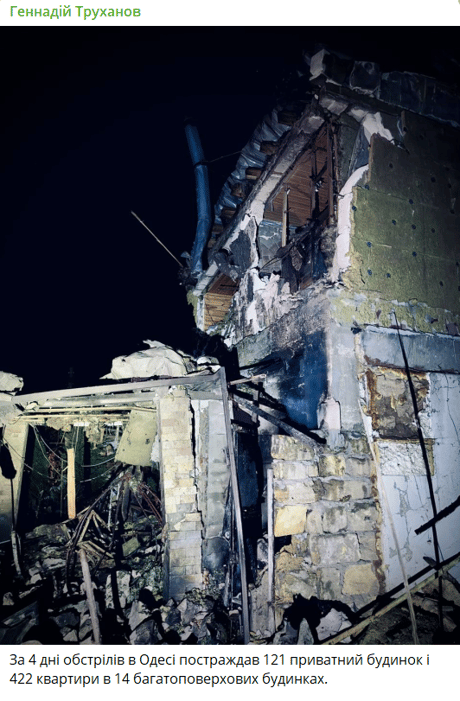 It should be recalled that during the Russian shelling of Odesa on the night of November 7, forty apartments in three buildings were damaged. Fortunately, there were no victims.
