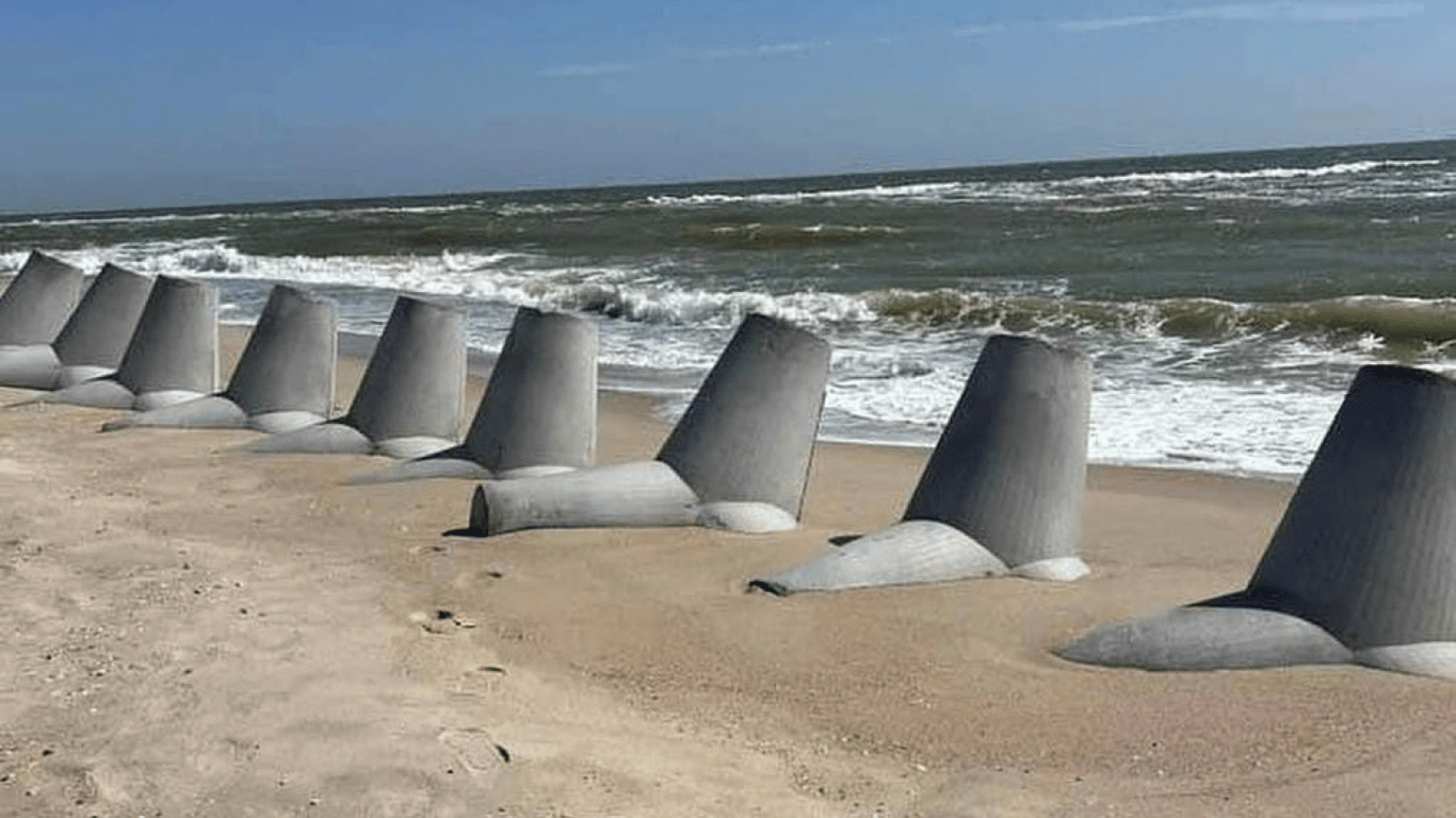 Частина фортифікаційних споруд у Затоці в Одеській області пішла під воду. Спеціальні бетонні конструкції — тетраподи — встановили навесні на випадок висадки ворожого десанту.