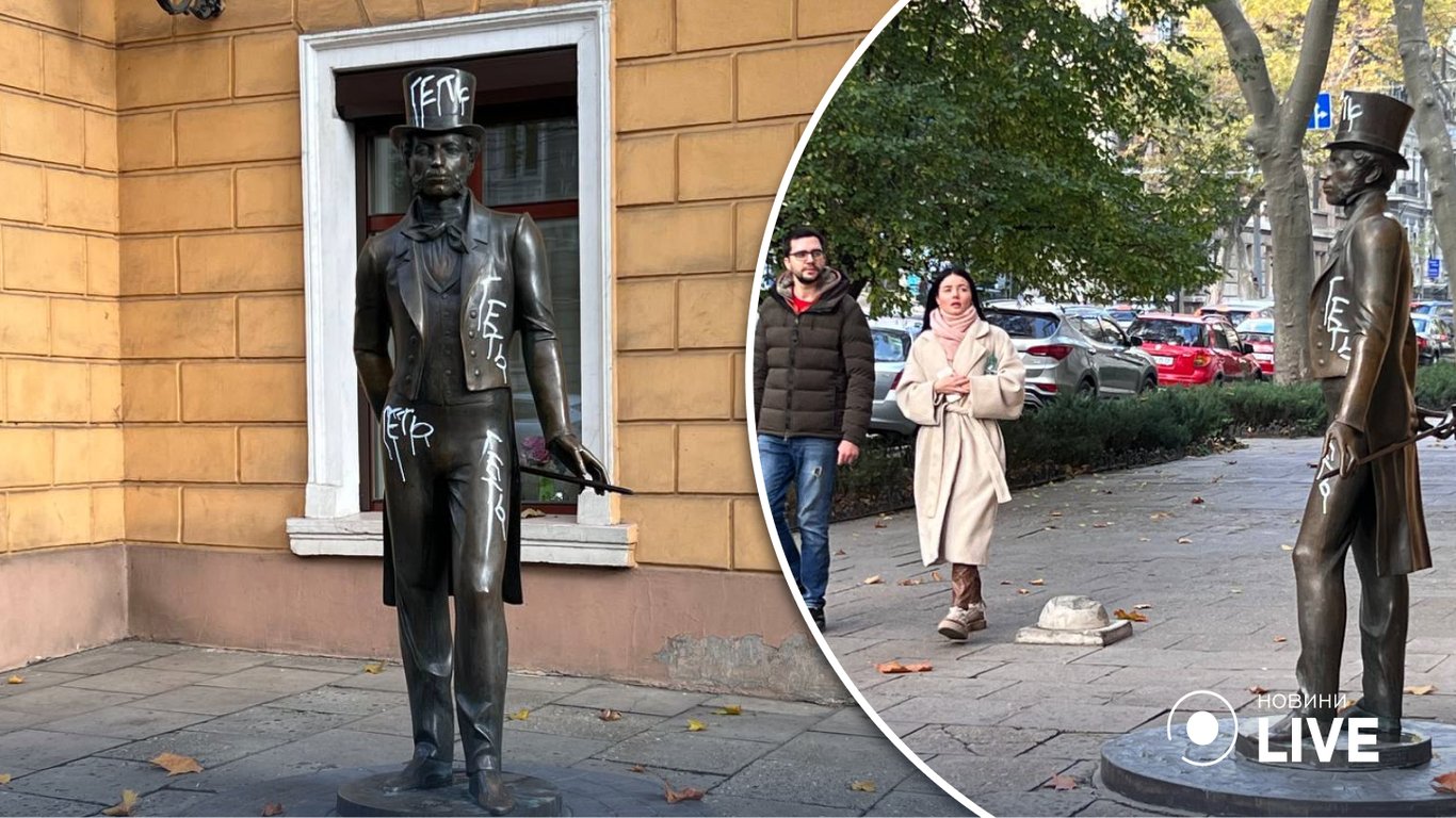 "Геть": в Одесі розмалювали пам'ятник Пушкіну
