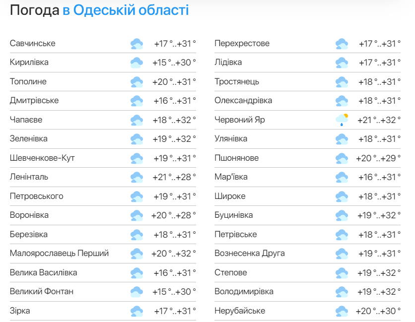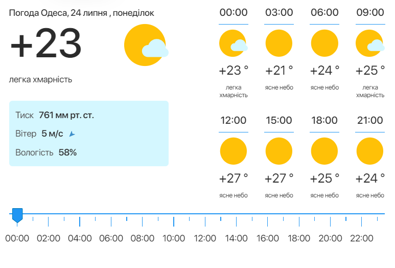 Сьогодні, 24 липня, в Одесі хмар на небі спостерігатися не буде, день обіцяє бути ясним. Опадів не передбачається.