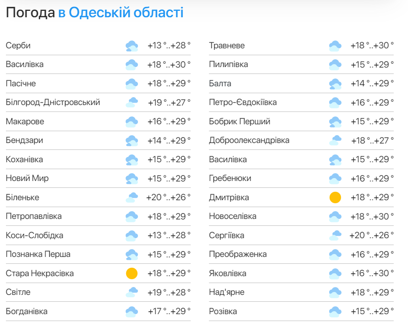 Прогноз погоди в Одеській області