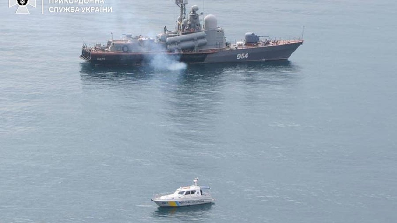 "Озброєний протикорабельними ракетами, димить, пихтить та погрожує катеру Морської охорони Держприкордонслужби. А прикордонний катер, хоч і малий, але випромінює нескореність і впевненість, що все буде Україна", — йдеться у повідомленні.