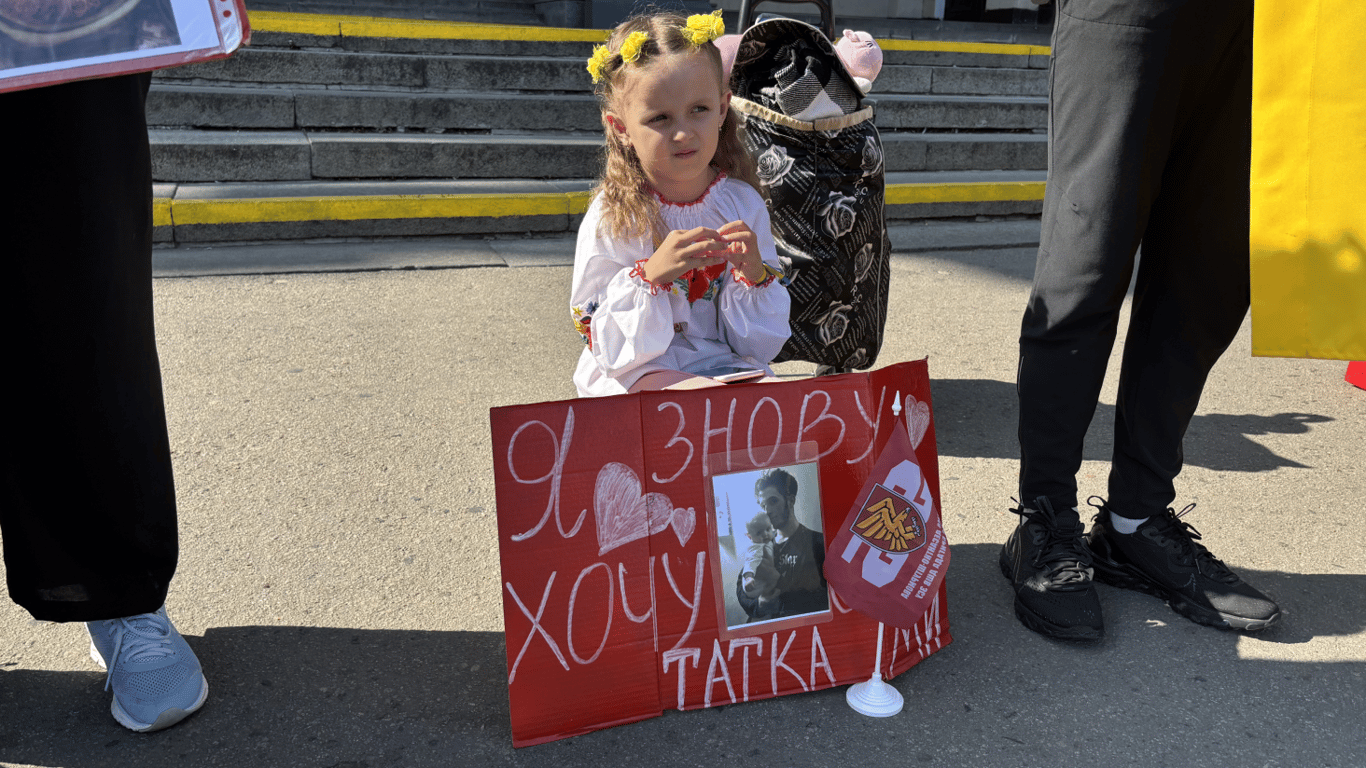 "Ми сьогодні тут, щоб котрий раз нагадати про наших рідних, безвісти зниклих та військовополонених. Кожна дитина мріє обійняти тата, а кожна мама — сина. Моя сім’я вже понад 30 місяців чекає тата з полону. Я хочу, щоб він був поряд, щоб я могла його обійняти і більше не рахувати роки очікування", — сказала дівчина.