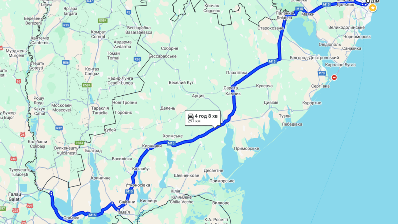На міжнародній трасі М-15 на півдні Одеської області зафіксовано скупчення машин біля Татарбунарів та Ізмаїла. Проте варто зазначити, що розмір цього затору суттєво не впливає на трафік. На самому поромному пункті пропуску є черга.