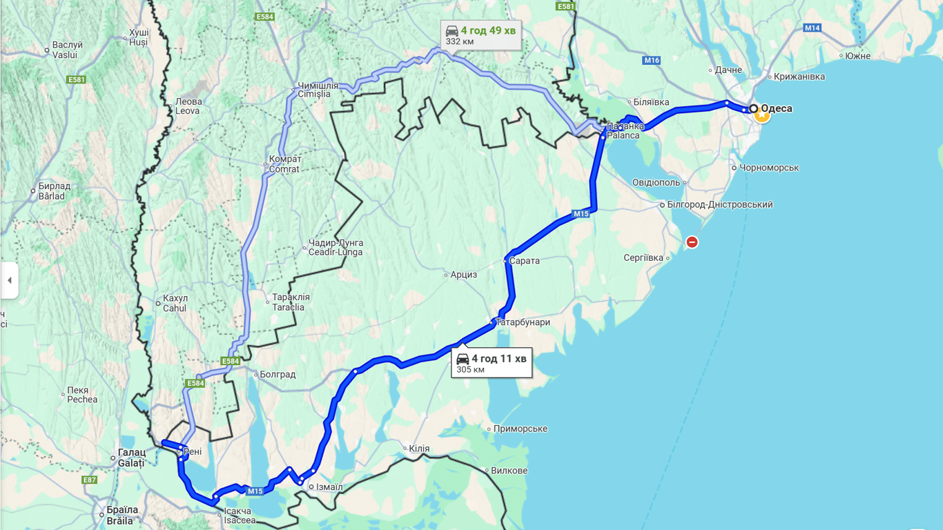 На пункті пропуску "Рені — Джюрджюлешть" ситуація відрізняється: черги на перетин кордону відсутні, однак на в’їзді до України утворився затор. Ця ділянка позначена червоним кольором на картах.
