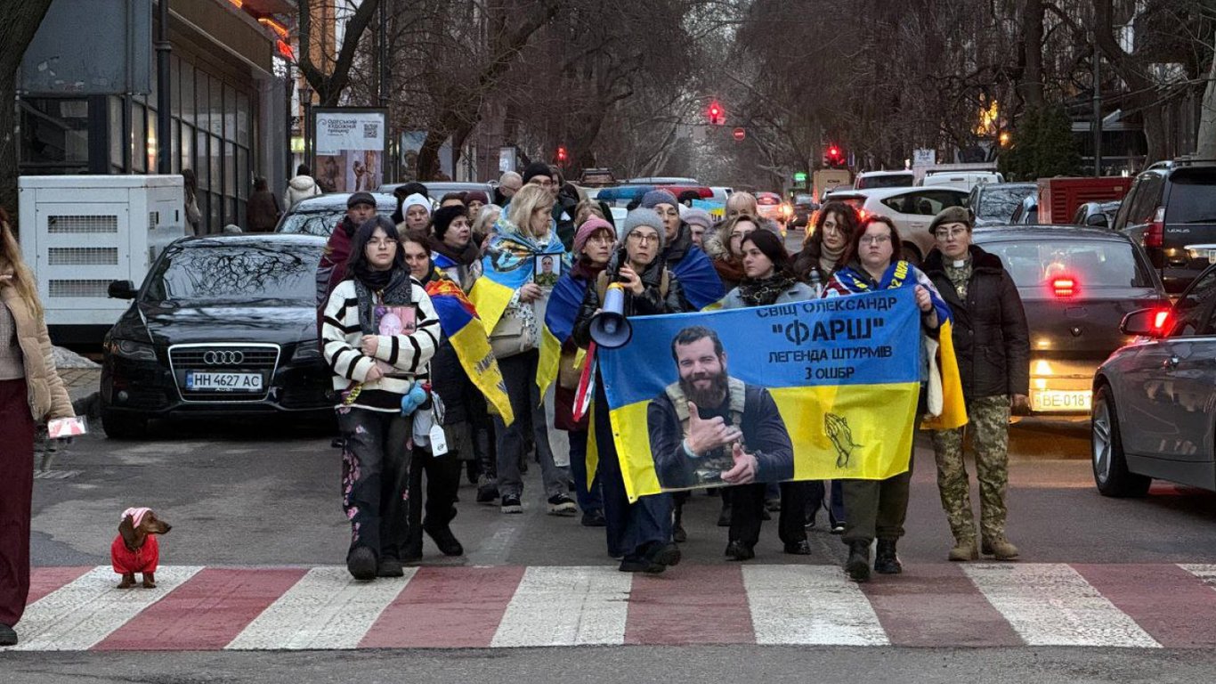 Колона одесита з державними прапорами, портретами загиблих і лампадками пройшла Дерибасівською, далі Європейською вулицею монумент загиблих героїв, що імпровізується. Де поіменно згадали тих, хто віддав свої життя за Україну.