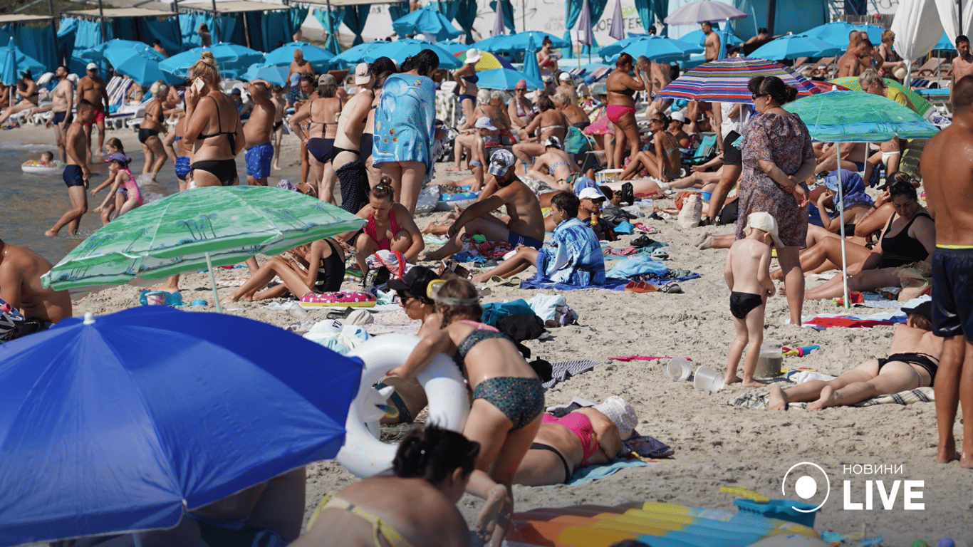 Не встигли стрілки годинника показати 8:00 ранку, як на одеських пляжах буквально яблуку ніде впасти. Поплескатися у морі йдуть цілими родинами, з дітьми та навіть домашніми улюбленцями. Не лякають людей ані повітряні тривоги, ані ціни на відпочинок.
