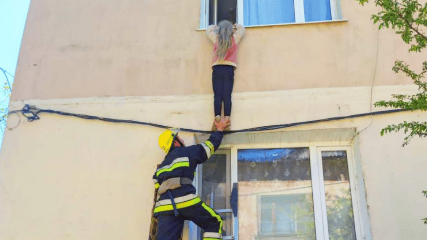 Сьогодні, до Служби порятунку надійшло повідомлення від небайдужої громадянки про те, що 9-річна дівчинка вилізла з вікна квартири на 2-му поверсі і, стоячи на скрутці інтернет кабелів, ледве тримається руками за підвіконня. Дитина на той момент знаходилась вдома сама.