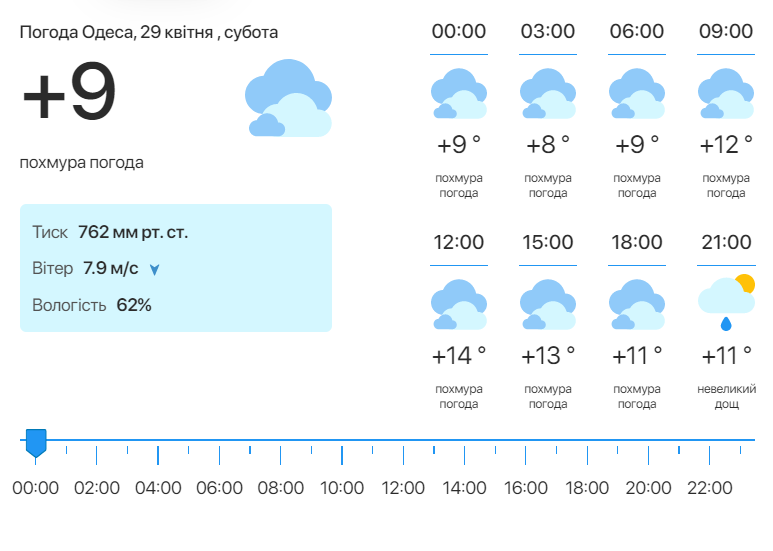 - Вітер східний, 5-8 м/с, вдень 6-10 м/с.