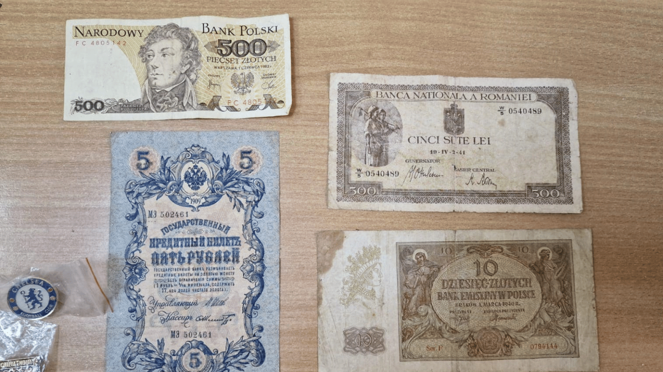 Серед знайденого виявилися банкноти різних країн, монети радянських часів, французькі франки, карбовані протягом 1920-1940-х років, румунські леї 1920-1930-х років, італійські монети, датовані 1919-1941 роками, англійські монети з 1890 по 1940-і роки, грецькі монети 1882 року.