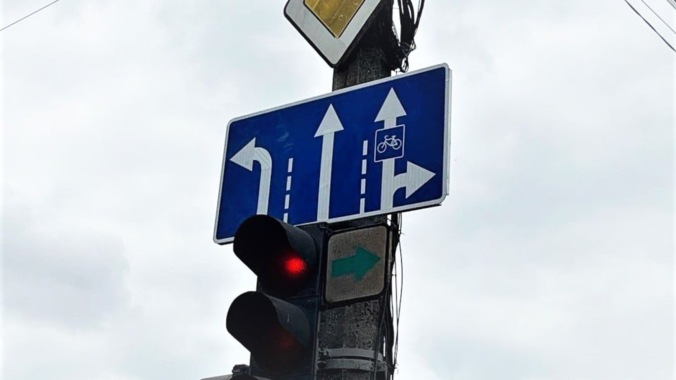 Також з‘явився новий знак на вулиці Академіка Вільямса перед вулицею Ільфа та Петрова. Цей знак означає, що з крайньої правої смуги рухатися прямо можуть тільки велосипедисти. Тобто водії при здійснені маневру повинні надати перевагу велосипедистам, що рухаються прямо.