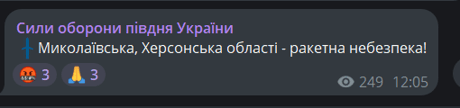 Раніше Сили оборони півдня України повідомляли про ракетну небезпеку для південних регіонів України. Це стало причиною оголошення повітряної тривоги.