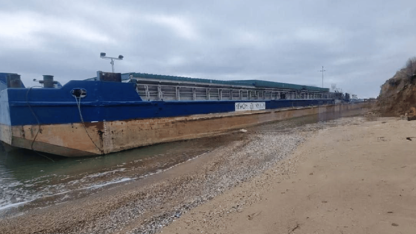 На Одещині баржу для перевезення зерна прибило до берега — деталі