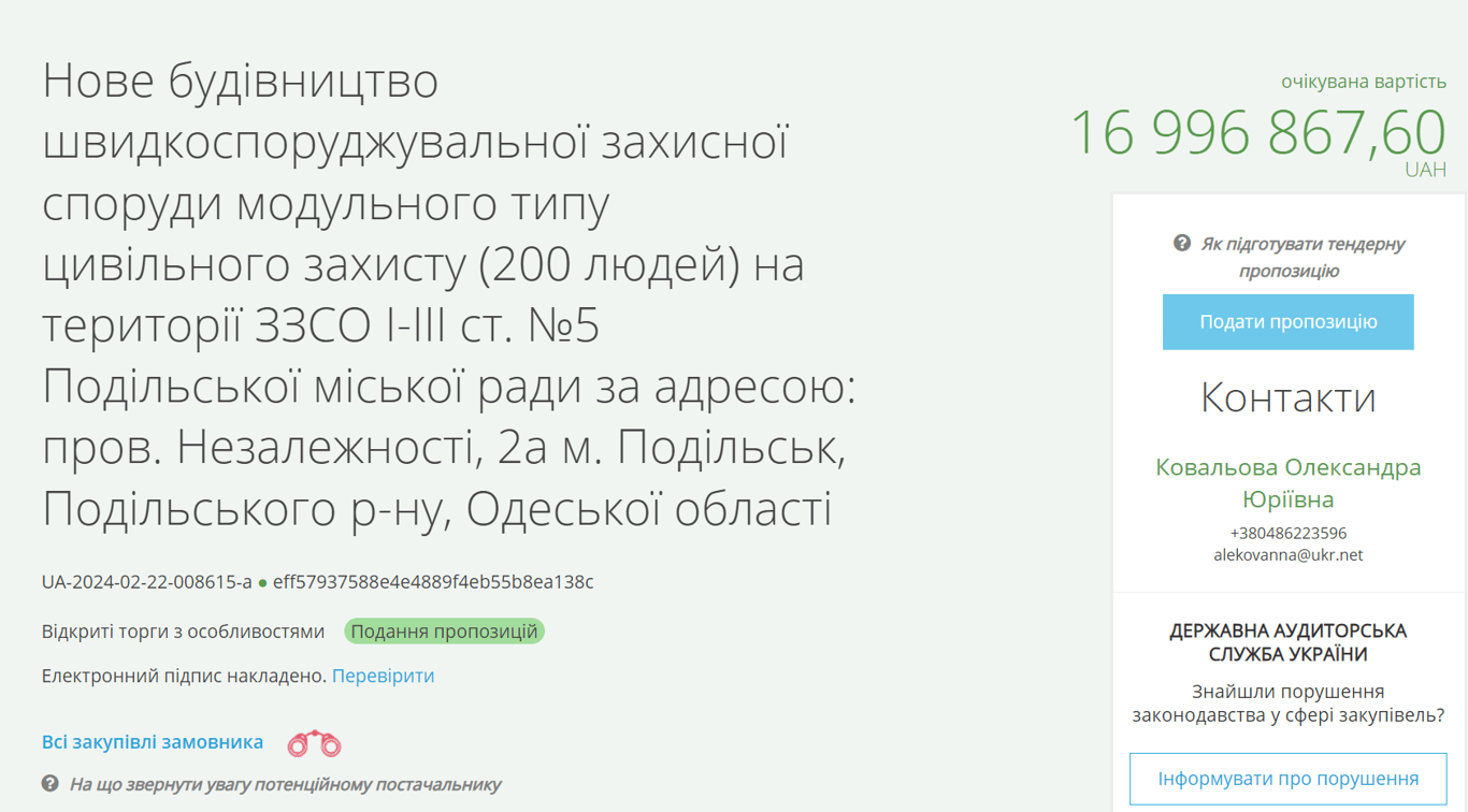 На Одещині планують побудувати укриття за 17 мільйонів — ProZorro