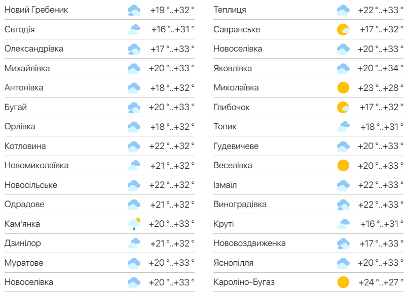 - Вночі місцями короткочасний дощ, гроза. Вдень без істотних опадів.