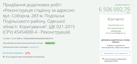 За даними відкритого аукціону, замовником став відділ житлово-комунального господарства, будівництва, благоустрою та розвитку інфраструктури Куяльницької сільської ради Подільського району Одеської області.