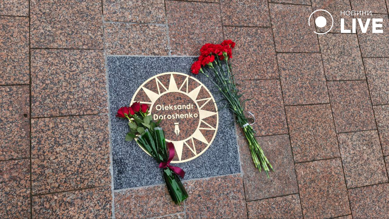 Біля оперного театру зʼявилися імена одразу трьох письменників та поетів — Олександра Козачинського, Михайла Жука та Олександра Дорошенка. Родичі та близькі митців отримали памʼятні таблички та винагороди.