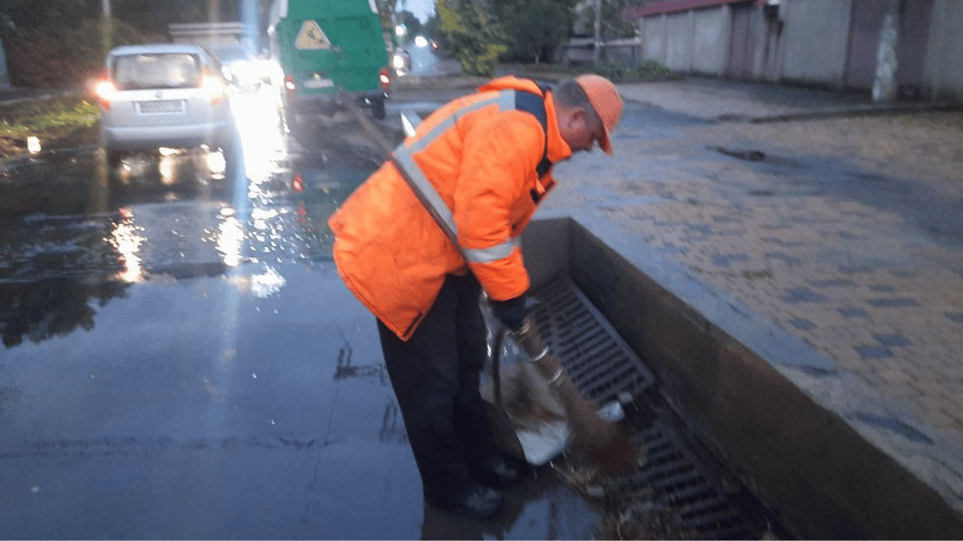 В Одесі триває ліквідація наслідків зливи. Комунальні служби з самого ранку працюють над очищенням дощоприймачів, зупинок та прилеглих територій. Попри це, частина вулиць досі залишаються підтопленими, що ускладнює рух транспорту.