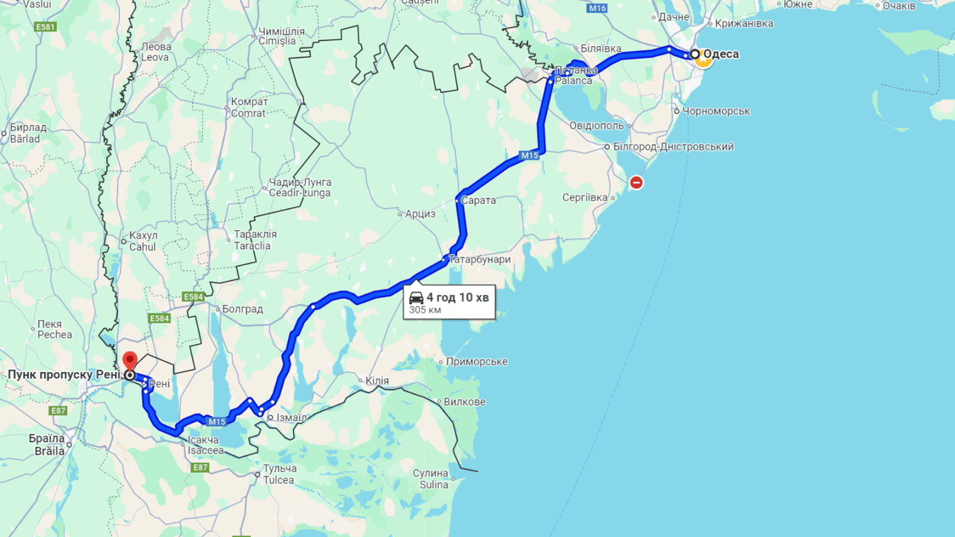 На пункті пропуску "Рені — Джюрджюлешть" ситуація відрізняється: черги на перетин кордону відсутні, однак на в’їзді до України утворився затор. Ця ділянка позначена червоним кольором на картах.