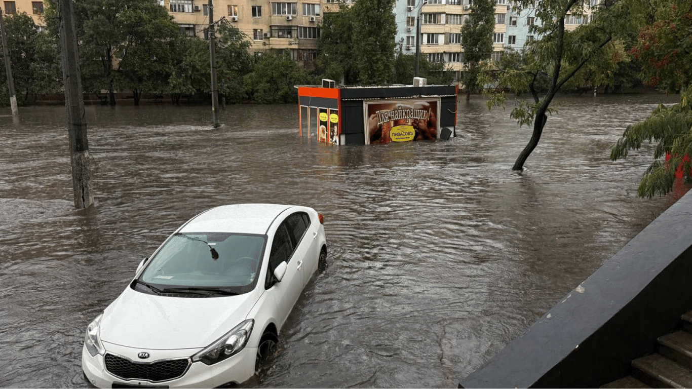 Станом на 17:00 через зливу Одесу охопили масштабні підтоплення. На багатьох вулицях рух транспорту ускладнений або повністю перекритий.