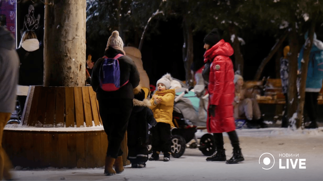 Попри постійні відключення світла та холодній і пусті квартири, одесити продовжують насолоджуватися життям. З ліхтарями, але все одно щасливі містяни вийшли на вечірню прогулянку у парк Горького.