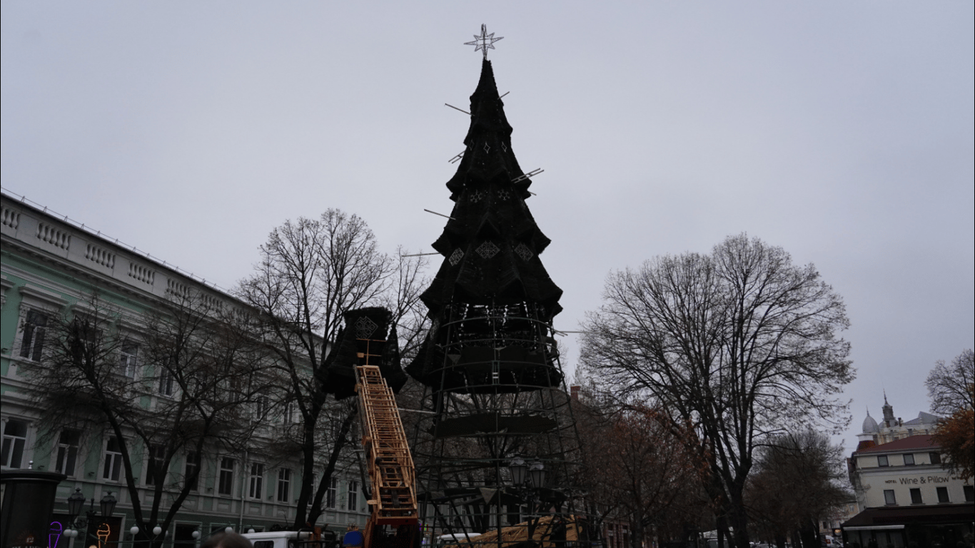 В Одесі завершують монтаж новорічної ялинки на Дерибасівській. Її відкриття заплановане на 6 грудня. Бюджетні кошти на святкові заходи не витрачали.