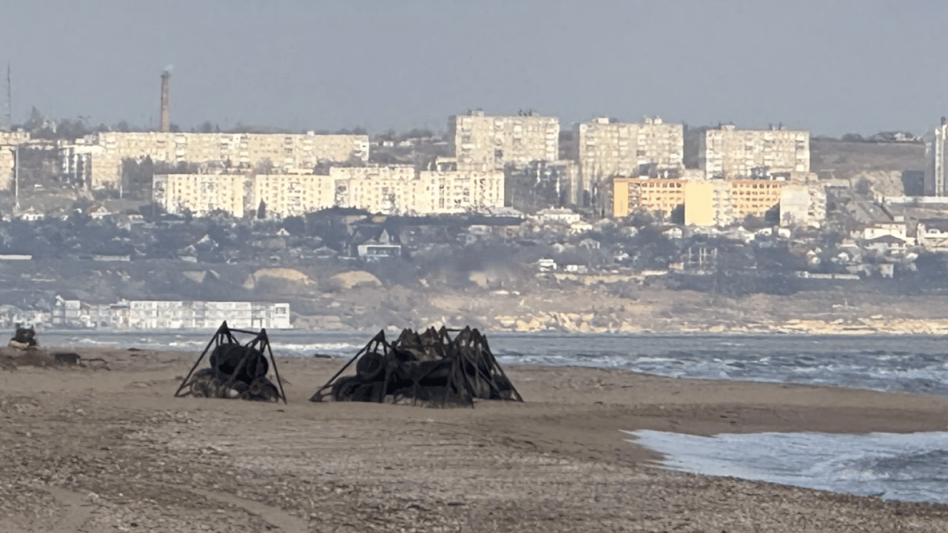 Канал повідомляє, що днями на міський пляж у Керчі море викинуло бочки, зв'язані металевим каркасом. Саме такі конструкції використовують росіяни для захисту Кримського мосту.