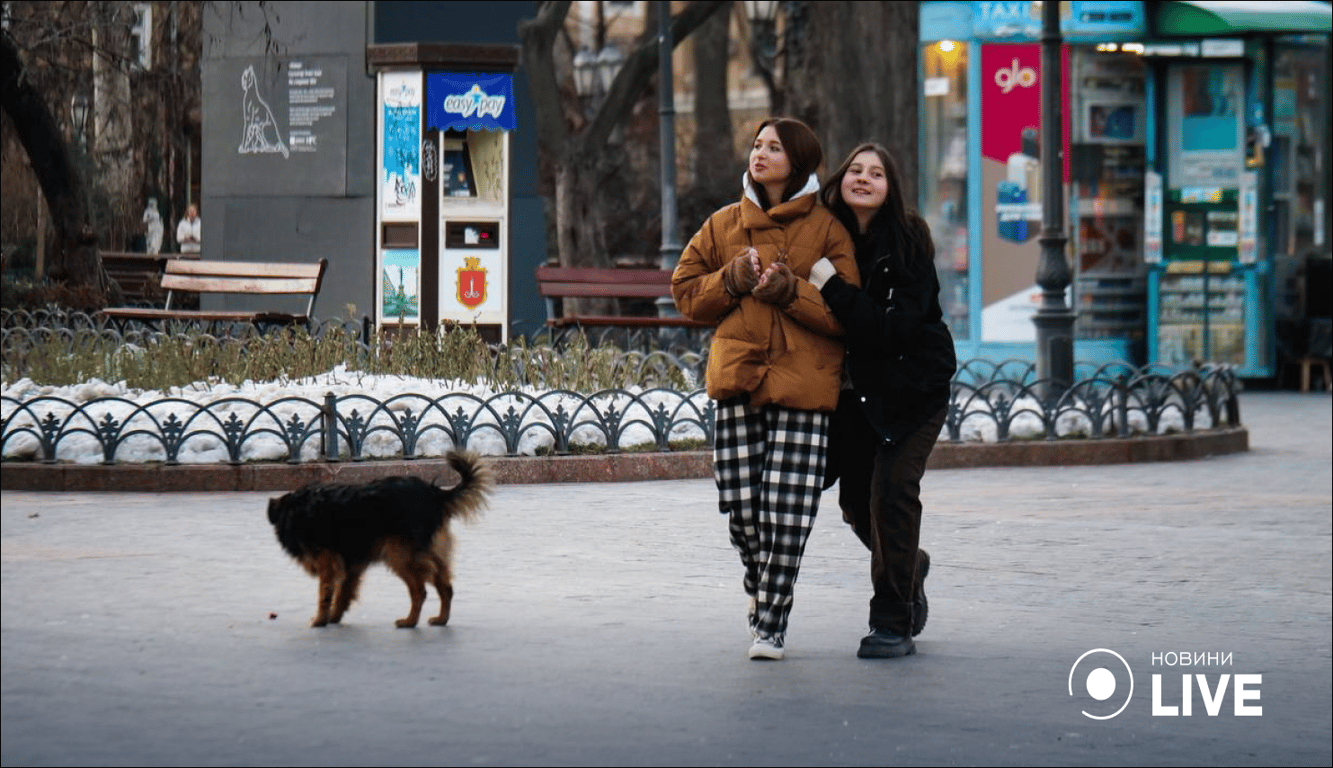 Відлига, що трохи запізнилася змусила одеситів ще кутатися у теплий одяг. Але сміливі дівчата вже одягають більш весняні вбрання.