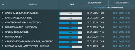 До 12:00 середи, 8 січня, води не буде за адресами: