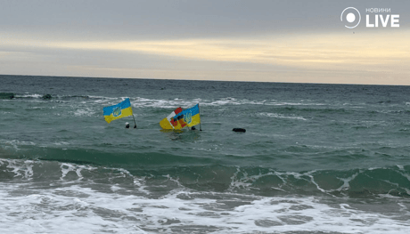 Учасники громадської організації "Моржі Одеси" зібралися вранці 6 січня на пляжі "Ланжерон". Вони провели традиційний заплив з прапорами Одеси та України, приурочений до свята Водохреща.