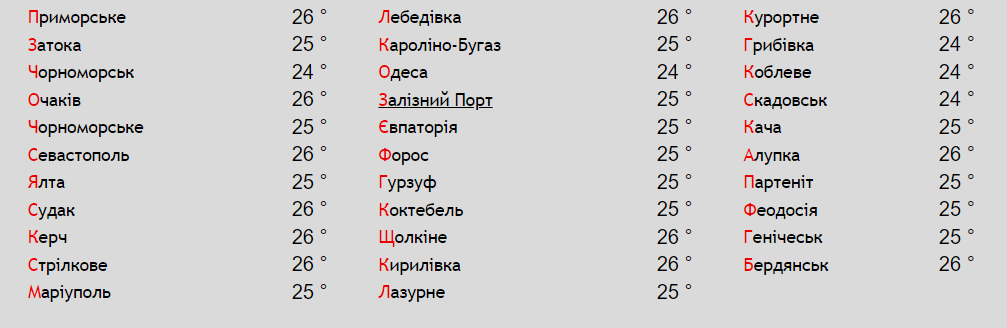 Максимальна наразі температура Чорного моря в територіальних водах України фіксується біля Одеської та Миколаївської областей. Вода там прогрілася до +26°С.