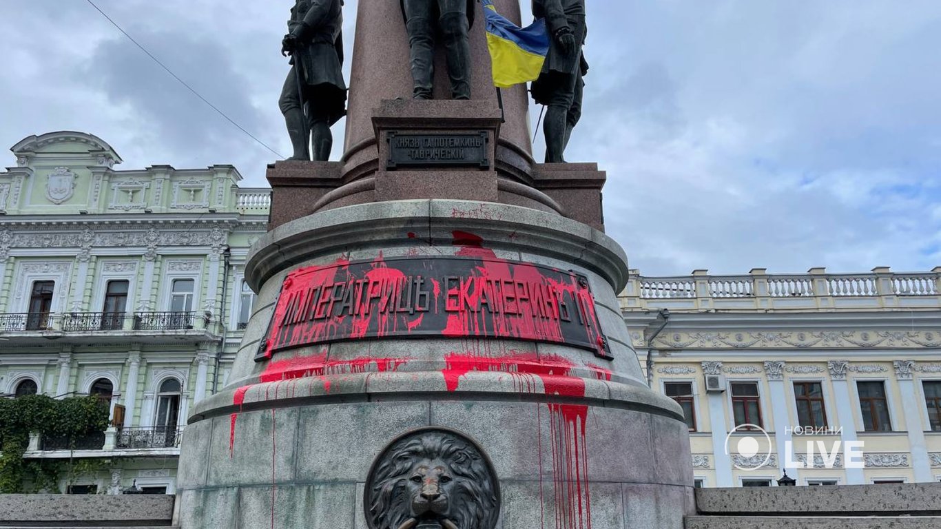 За тиждень пам'ятник Катерині ІІ в Одесі розфарбовують червоною фарбою вже втретє. Останніх художників поки ще не ідентифікували.