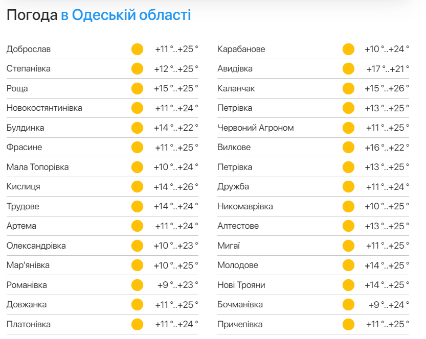 Прогноз погоди в Одеській області
