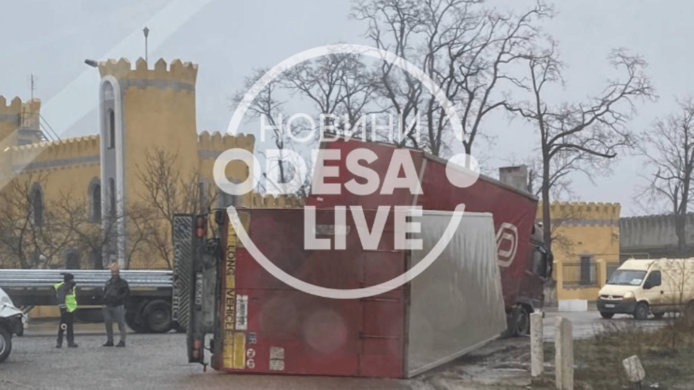 Під Одесою вантажівка влетіла в фуру і вона "лягла" на бік. Фото