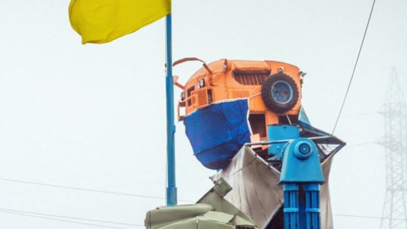Під Одесою на 10-метрового робота вдягнули медичну маску. Фото